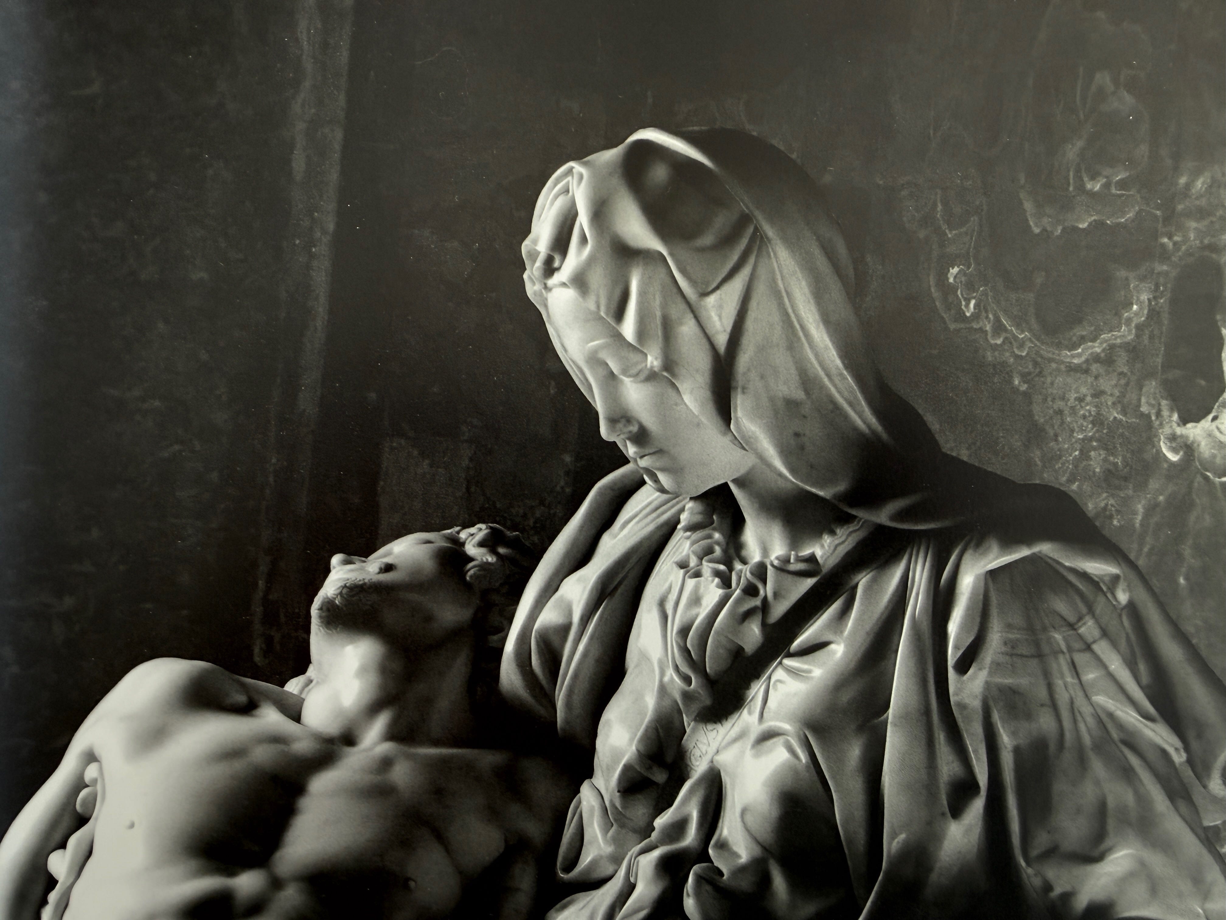 One might think the model was a man half-awake, dozing. But Michelangelo rarely worked from live models. He sketched rapid drawings, from memory, and from an unmatched understanding of human anatomy and its dynamics. The dozing man—if there ever was one—and the sculptor, himself have long since died. Yet the Pietà remains fully present in our world.